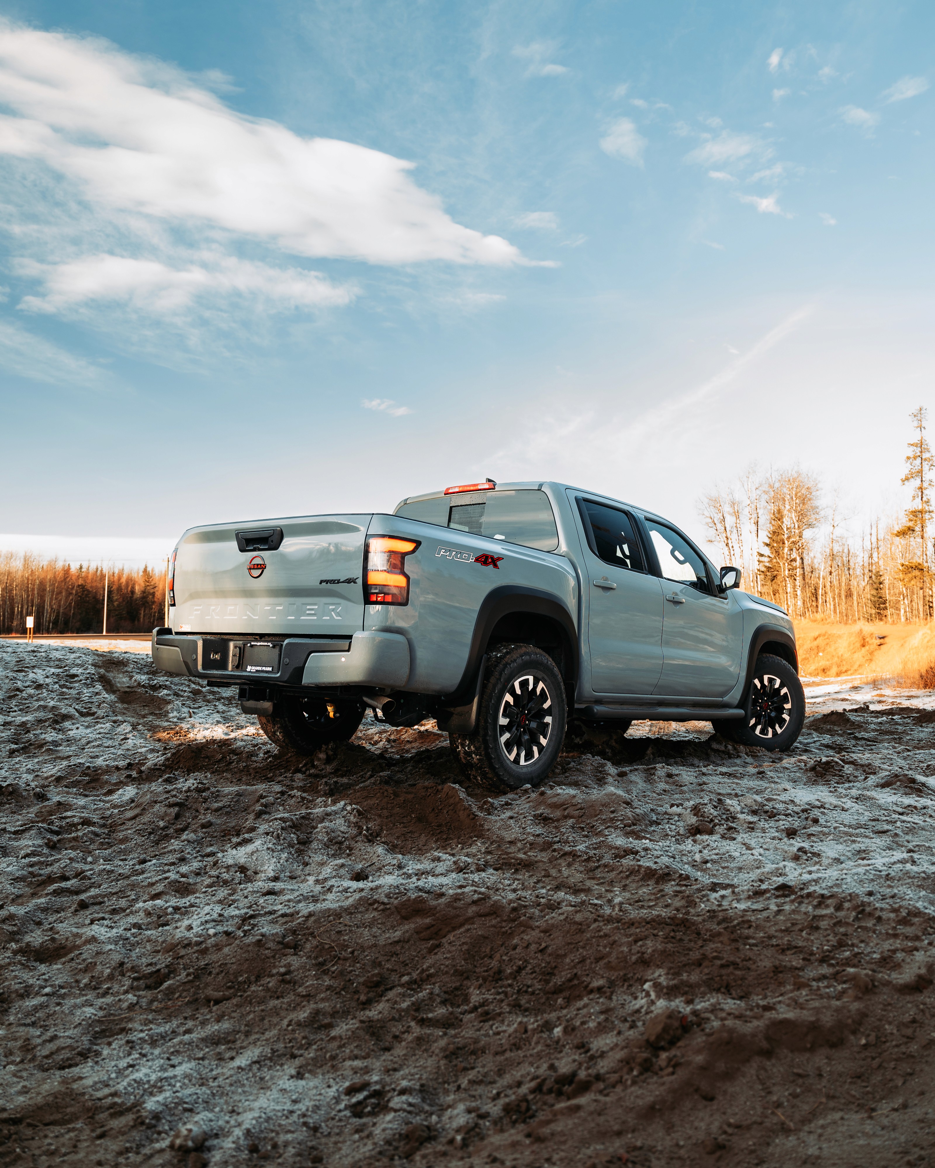 Feature shoot of the Boulder Gray 2024 Nissan Frontier PRO-4X for Grande Prairie Nissan.
