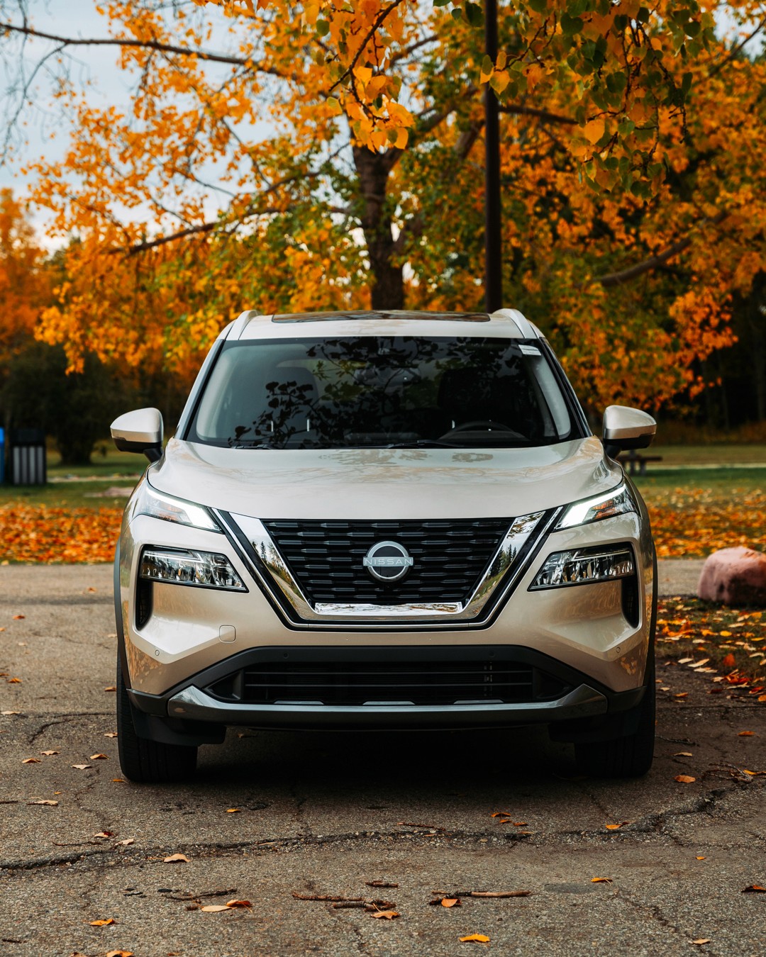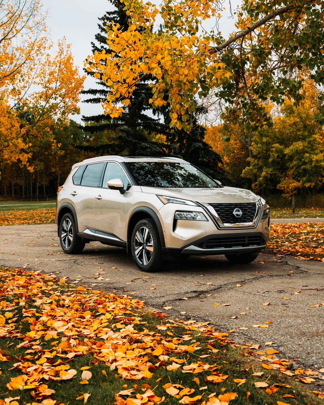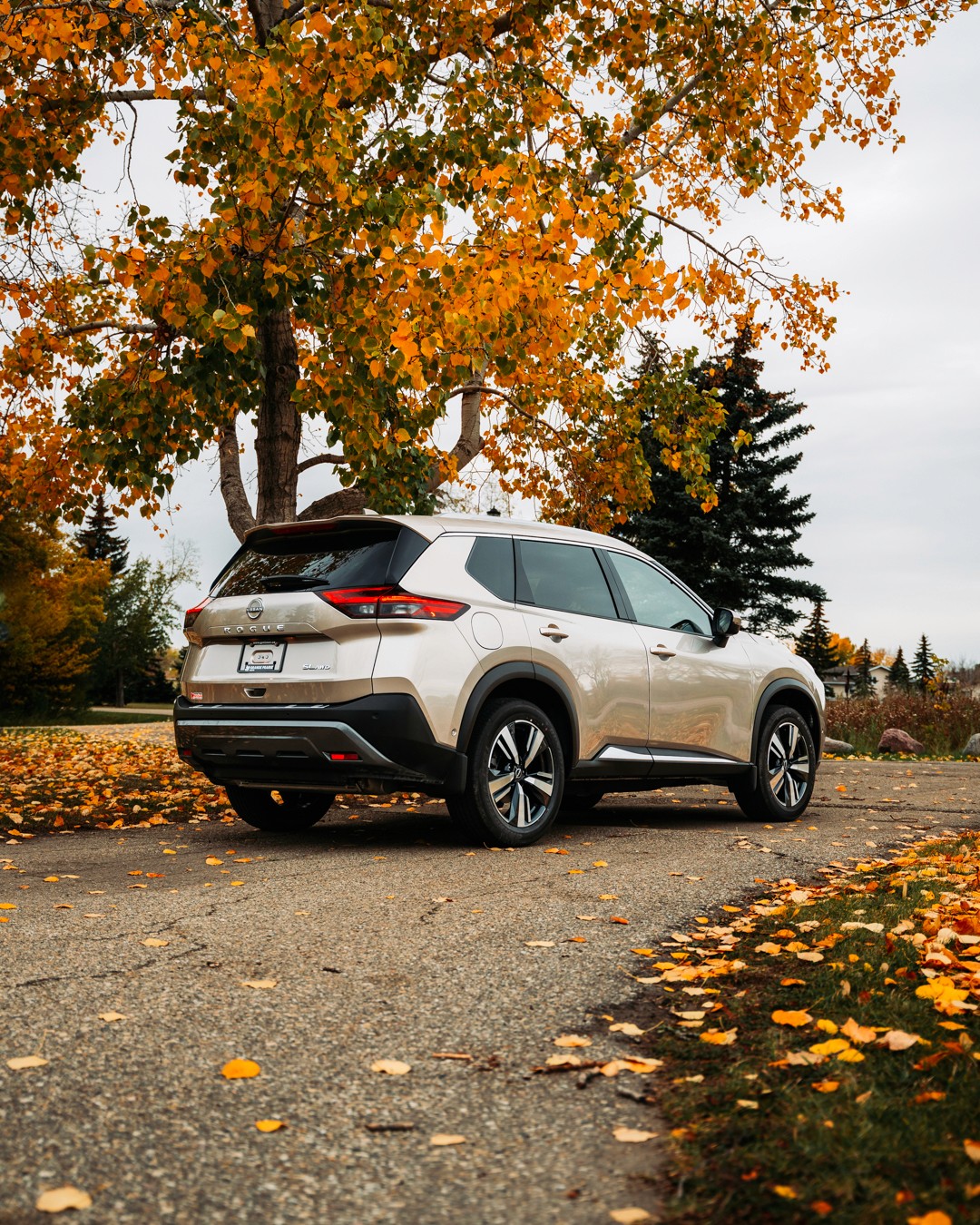 Feature shoot of the Champagne Silver 2023 Nissan Rogue SL for Grande Prairie Nissan.