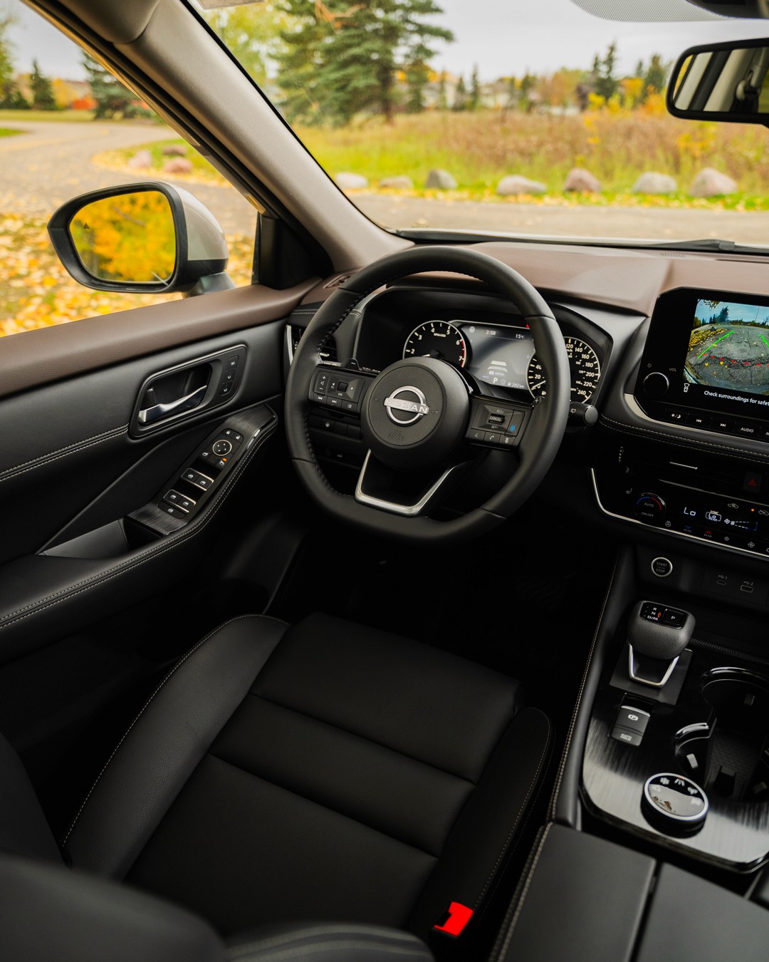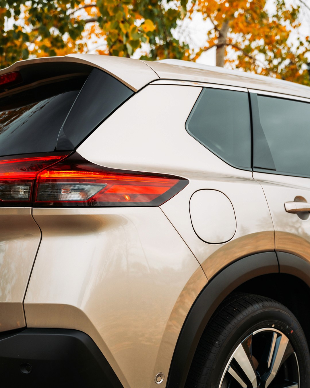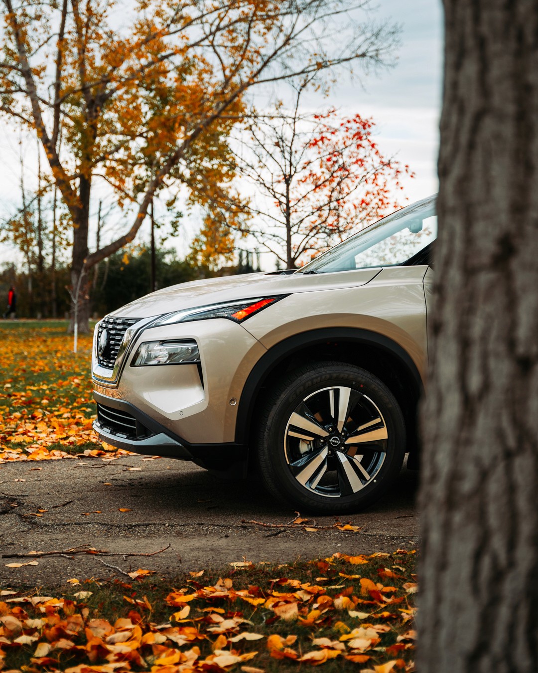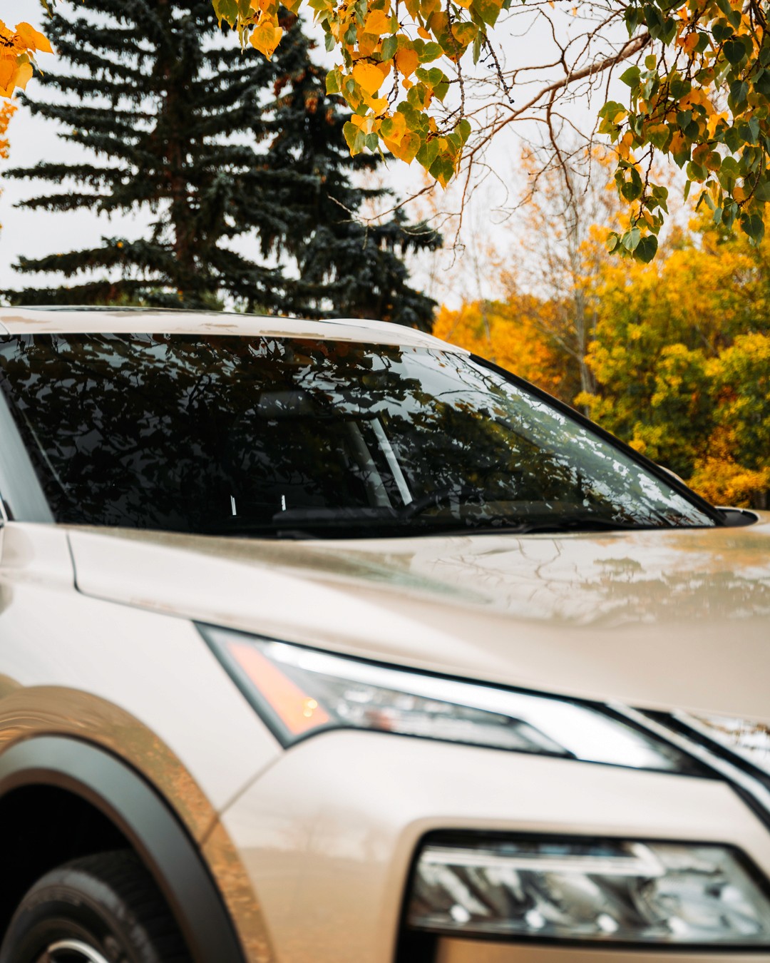 Feature shoot of the Champagne Silver 2023 Nissan Rogue SL for Grande Prairie Nissan.